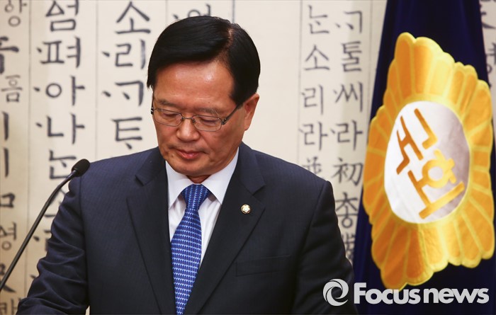 (서울=포커스뉴스) 정의화 국회의장이 25일 오후 서울 여의도 국회에서 20대 총선 불출마 선언 및 국회 선진화법 개정안에 대한 중재안 발표 기자회견을 마친 뒤 퇴장하고 있다.