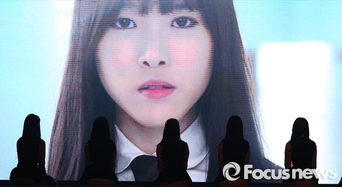 (서울=포커스뉴스) 25일 오후 서울 광진구 악스코리아에서 열린 걸그룹 여자친구의 세 번째 미니앨범 ‘SNOWFLAKE’ 발매 쇼케이스에 참석한 멤버들이 신곡 '시간을 달려서'의 뮤직비디오를 감상하고 있다.