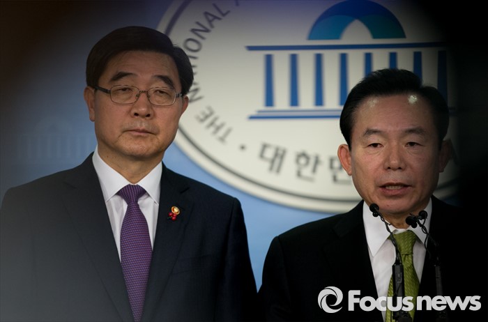 (서울=포커스뉴스) 이기권(왼쪽) 고용노동부 장관과 이인제 새누리당 노동선진화특위원장 등 의원들이 25일 오후 서울 여의도 국회 정론관에서 노동개혁 2대 지침(일반해고 지침, 취업규칙 지침) 설명회를 마친 뒤 브리핑을 하고 있다.