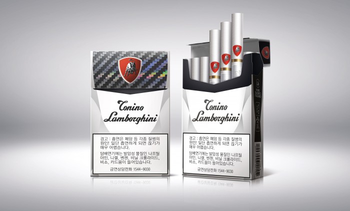 제품 패키지는 심플하고 모던한 화이트 앤 블랙 색상을 기본으로 고급감을 강화하는 한편, 상단에 람보르기니 가문을 상징하는 '토로(TORO)' 엠블렘을 적용해 진취적인 느낌을 담았다고 KT&G측은 설명했다.