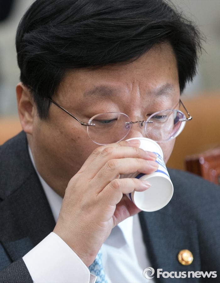 (서울=포커스뉴스) 25일 오후 서울 여의도 국회에서 열린 산업통상자원위원회 전체회의에 참석한 주형환 산업통상자원부 장관이 물을 마시고 있다.