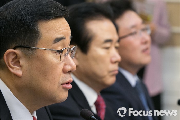 (서울=포커스뉴스) 김정훈(왼쪽) 새누리당 정책위의장이 26일 오전 서울 여의도 국회 귀빈식당에서 열린 '임금 체불 및 하도급대금 부조리 해결' 합동 당정협의에 참석해 모두발언하고 있다.
