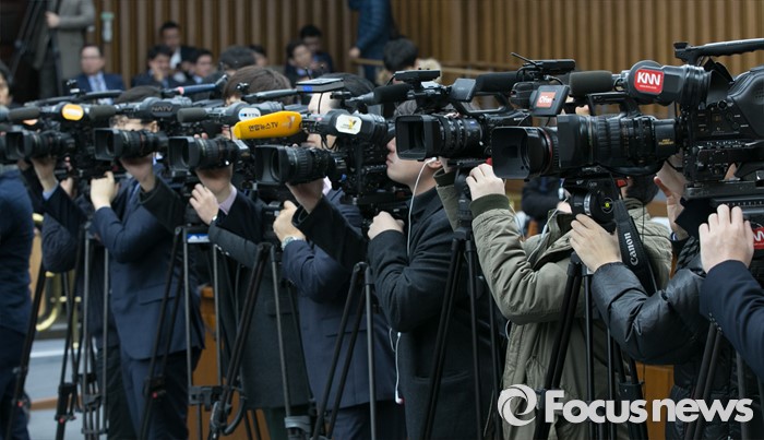 (서울=포커스뉴스) 방송 카메라 기자들이 26일 오전 서울 여의도 국회에서 새누리당 원내대책회의를 취재하고 있다.