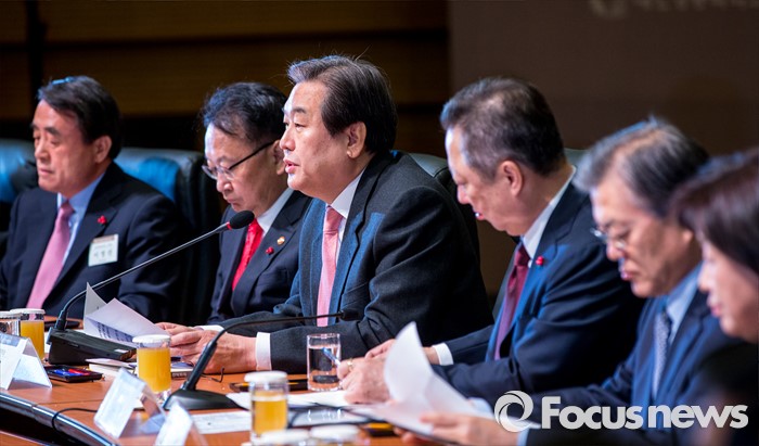 (서울=포커스뉴스) 김무성 새누리당 대표가 26일 오전 서울 중구 대한상공회의소 국제회의장에서 열린 '중장기 경제어젠다 추진 전략회의'에 자리해 축사하고 있다. 이날 회의에 자리한 여야정 대표 및 산학연 대표 70여명은 규제 근본 틀 개선, 기업문화 개선, 국민 행복 위한 서비스 발전 등을 논의 할 예정이다.