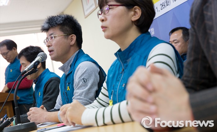 (서울=포커스뉴스) 26일 오전 서울 서대문구 전국교직원노동조합 대회의실에서 변성호 전교조 위원장이 법외노조통보 항소심 판결과 교육부 후속조치에 대한 전교조 입장 발표 기자회견에 참석해 인사말과 모두발언을 하고 있다.