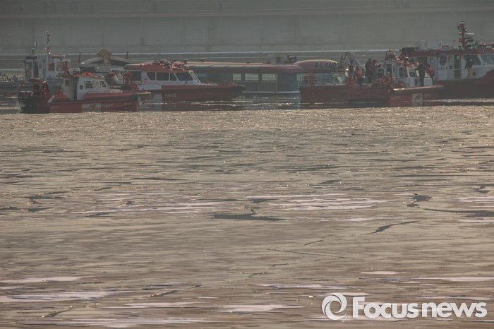 (서울=포커스뉴스) 26일 오후 서울 한강 영동대교 인근을 지나던 한강유람선이 침수, 구조대원들이 구조활동과 견인 작업을 하고 있다.
