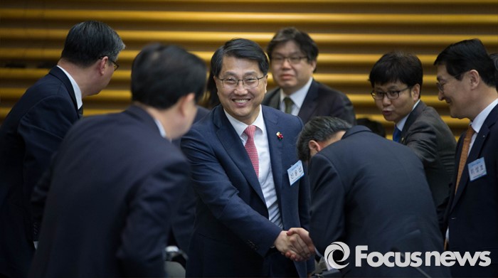 우우(서울=포커스뉴스) 진웅섭 금융감독원장이 26일 오후 서울 중구 통일로 농협은행 본점에서 열린 '서민금융 대토론회' 에 참석, 참석자들과 인사를 나누고 있다.