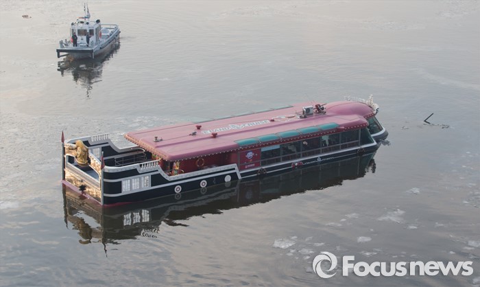 (서울=포커스뉴스) 26일 오후 서울 한강 영동대교 아래에서 한강유람선이 침수되고 있다.