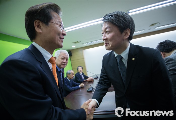 (서울=포커스뉴스) 국민의당 안철수 의원이이 27일 오전 서울 마포구 국민의당 당사에서 열린 기획조정회의를 마치고 천정배 의원과 인사를 나누고 있다.