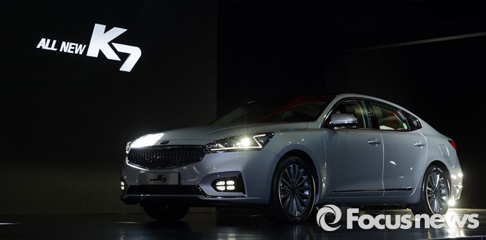 기아차 관계자는 이 같은 실적에 대해 "극심한 글로벌 경기침체에도 불구하고 K5와 스포티지 등 신차 출시와 RV 차종 판매 호조의 영향으로 판매대수와 매출액이 증가했다"며 "영업이익도 연간 기준으로는 감소했으나 하반기에는 전년보다 늘어 수익성을 방어할 수 있었다"고 말했다.(서울=포커스뉴스) 26일 오전 서울 강남구 그랜드 인터컨티넨탈 서울 파르타스에서 열린 '기아차 올 뉴 K7 신차발표회'에서 K7 차량이 무대 위에 전시되어 있다. 2016.01.26 오장환 기자
