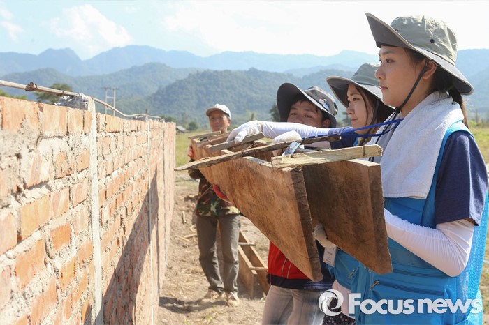 (서울=포커스뉴스) 명지대학교 2015년 동계 해외봉사활동 대원들이 20일 라오스 우돔싸이에서 초등학교 신축 봉사활동을 하고 있다. 명지대학교 자원봉사팀은 28일 까지 인도차이나 지역 타 국가에 비해 교육환경이 열악한 라오스에 교사를 신축하고 교육프로그램 등을 지원했다. <사진제공=명지대학교>