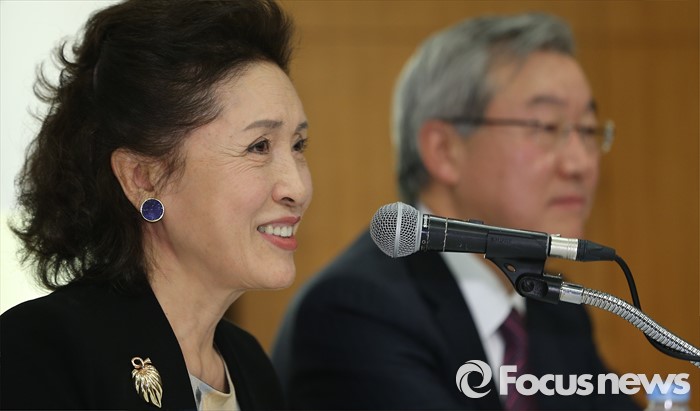 (서울=포커스뉴스) 27일 오전 서울 중구 엠버서더 호텔에서 열린 '2016 평창겨울음악제' 기자간담회에 참석한 정명화(왼쪽) 음악감독이 참여 아티스트를 소개하고 있다.