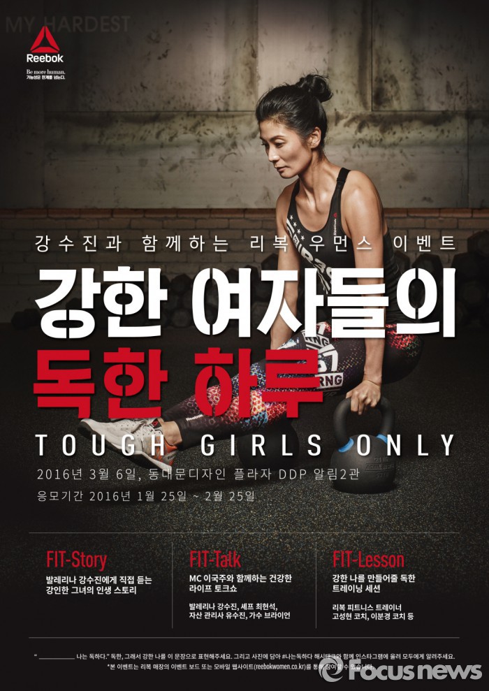 (서울=포커스뉴스) 리복은 오는 3월6일 동대문디자인플라자(DDP)에서 발레리나 강수진 단장과 함께하는 우먼스 이벤트 ‘강한 여자들의 독한 하루(TOUGH GIRLS ONLY)’를 개최한다.
