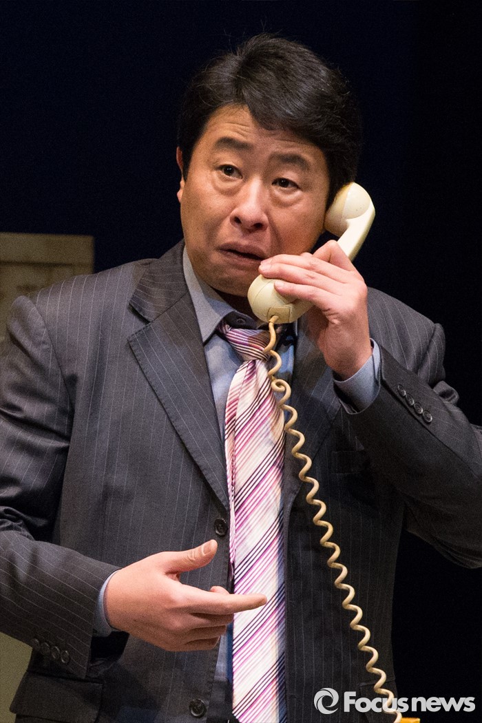 (서울=포커스뉴스) 27일 오전 서울 중구 명동예술극장에서 열린 연극 '날 보러와요' 프레스콜에 배우 이대연(김반장)이 연기하고 있다.
