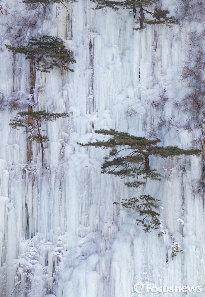 (철원=포커스뉴스) 26일 강원 철원군 한탄강 현무암 협곡이 흘러내린 물로 빙벽을 이루고 있다.