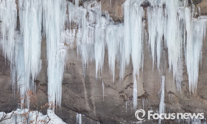 (철원=포커스뉴스) 26일 강원 철원군 한탄강 현무암 협곡이 흘러내린 물로 빙벽을 이루고 있다.