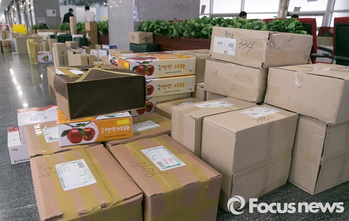 (서울=포커스뉴스) 설을 열흘여 앞둔 28일 오후 서울 여의도 국회 의원회관에 의실로 배달된 택배들이 쌓여 있다.