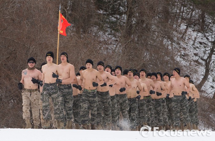 (평창=포커스뉴스) 28일 강원도 평창군 황병산 해병대 산악 종합훈련장에서 열린 '한·미 해병대 연합 동계 설한지 훈련'에 해병대 수색대대와 미 해병대 3사단 수색중대 장병들이 참가하고 있다.