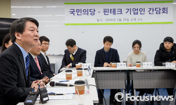 (서울=포커스뉴스) 28일 오후 서울 강남구 창업지원센터에서 열린 '국민의당-핀테크 기업인 간담회'에 참석한 안철수 인재영입위원장이 인사말을 하고 있다.