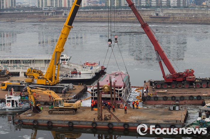 | △ 한강 침몰 유람선 인양 작업 진행중 |