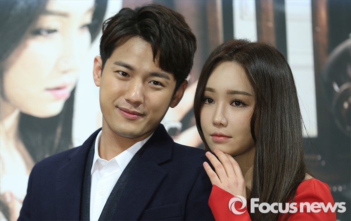 (서울=포커스뉴스) 28일 오후 서울 강남구 임피리얼 팰리스 호텔에서 열린 KBS 2TV 저녁 일일드라마 '천상의 약속' 제작발표회에 참석한 배우 서준영(왼쪽)과 이유리가 포토타임을 갖고 있다.
