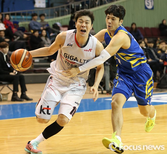 (서울=포커스뉴스) 28일 서울 잠실실내체육관에서 열린 2015-2016 프로농구 삼성-KT 경기에서 돌파를 시도하는 KT 조성민을 삼성 박재현이 저지하고 있다.