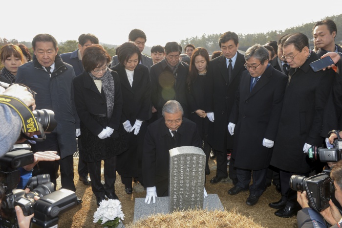 (서울=포커스뉴스) 김종인 더불어민주당 비상대책위원장이 31일 오전 광주 북구 운정동 국립 5·18민주묘지를 방문해 윤상원 열사 묘역 앞에서 국보위 참여를 사죄하고 있다. <사진제공=더불어민주당>