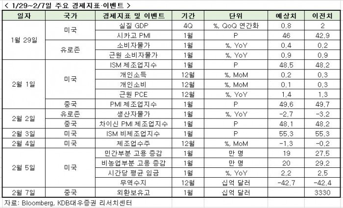 2월 1일에는 미국 1월 ISM 제조업지수가 발표된다. 현재 시장 평균 전망치는 48.5P로 전월 48.2P 대비 개선될 것으로 예상된다.
