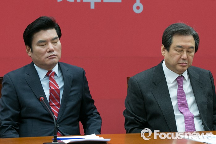 (서울=포커스뉴스) 김무성(오른쪽) 새누리당 대표와 원유철 원내대표가 1일 오전 서울 여의도 국회에서 열린 최고위원회의에 참석해 생각에 잠겨 있다.