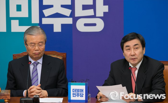 (서울=포커스뉴스) 이종걸 더불어민주당 원내대표가 1일 오전 서울 여의도 국회에서 열린 비상대책위원회의에 참석해 모두발언을 하고 있다. 왼쪽은 김종인 비대위원장.