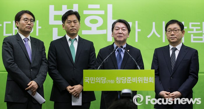 (서울=포커스뉴스) 안철수 국민의당 인재영입위원장이 1일 오전 서울 마포구 국민의당 당사에서 국민의당 합류 인사들을 소개하는 기자회견을 하고 있다. 왼쪽부터 정필재 변호사, 손금주 변호사, 안철수 위원장, 국성근 전남대 교수