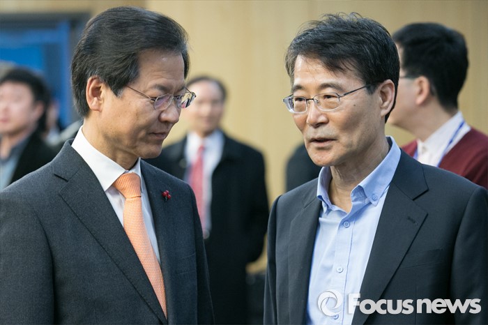 (서울=포커스뉴스) 천정배(왼쪽) 의원과 장하성 고려대 교수가 1일 오전 서울 여의도 국회 의원회관에서 열린 '장하성·안철수 경제토크'에 참석해 대화하고 있다.