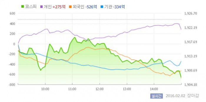 이날 코스피는 전일대비 0.51% 하락한 1914.96으로 장을 시작했다. 이후 지수는 낙폭을 더욱 확대했다.