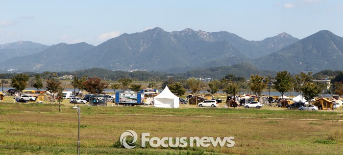 한편 문체부는 가족 단위 여가문화로서 야영 수요가 증가하는 추세에 대응해 올해 42억원의 예산을 '안전하고 건전한 야영문화'를 확산하는 데 지원한다. 이를 위해 △'야영장 안전․위생시설 개・보수' 사업(25억원) △'야영장 연계 프로그램'사업(8억원) △'친환경․안전 캠핑 캠페인' 사업(5억원) △'친환경 안전 캠핑 축제 사업(4억원) 등을 지원한다.함안군 '아라가야 강변레저 체험공원 오토캠핑장' 전경.<사진제공=함안군>