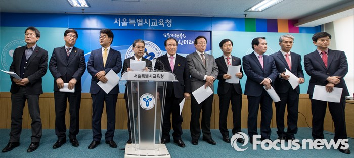 (서울=포커스뉴스) 누리과정(만 3~5세 무상보육) 예산문제 해결을 위해 3일 기자회견을 열었던 전국 14개 시·도교육감들이 릴레이 1인 시위에 나선다.