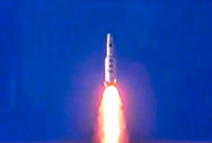 북한은 7일 오전 평안북도 철산군 동창리 미사일 발사장에서 장거리 미사일(로켓) 1발을 발사했다.북한 조선중앙TV가 7일 보도한 지구관측위성이라고 주장하는 광명성 4호의 발사장면.
