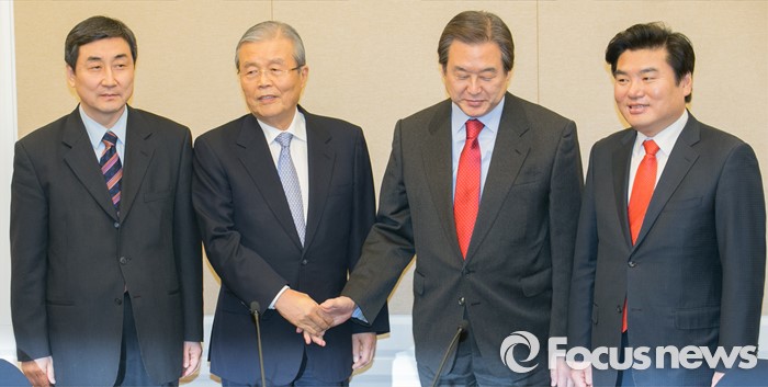 여당은 이 자리에서 북한의 장거리 미사일 도발로 인해 위기가 고조된 상황에서 북한인권법과 테러방지법의 통과가 필요하다는 점을 강력히 주장할 것으로 보인다.4일 오후 서울 여의도 국회 귀빈식당에서 열린 여야 지도부 회동에 참석한 의원들이 취재진을 향해 포즈를 취하고 있다. 왼쪽부터 이종걸 더불어민주당 원내대표, 김종인 비상대책위원장, 김무성 새누리당 대표, 원유철 원내대표. 2016.02.04 박동욱 기자