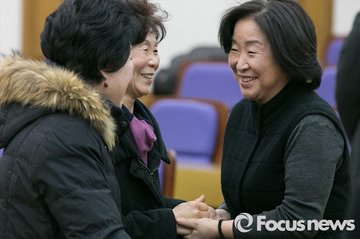 | △ 반갑게 인사하는 심상정 |