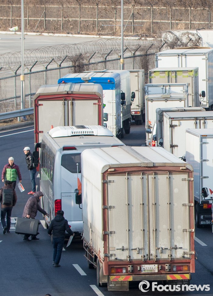 이어 "한반도 정세의 안정적 관리를 위해 정부와 국제사회의 외교적 노력을 거듭 촉구한다"며 "북한 핵실험이 중국을 겨냥한 한미일 삼각군사동맹 결성의 구실이 되지 않도록 모든 외교력을 발휘하라"고 했다.11일 오전 경기 파주시 경의선 남북출입사무소에서 개성공단 화물차들이 출경하고 있다. 2016.02.11 양지웅 기자
