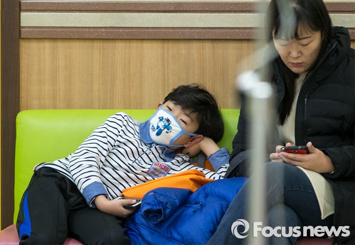 또 질본은 유행 시기 중이라도 인플루엔자 예방접종이 필요하다고 강조했다. 현재 보건소에서 65세 이상 어르신에게 무료접종하고 있다.(서울=포커스뉴스) 인플루엔자 유행주의보가 발령된 15일 오전 서울 용산구 소화아동병원에서 한 어린이가 진료 차례를 기다리고 있다. 2016.01.15 양지웅 기자