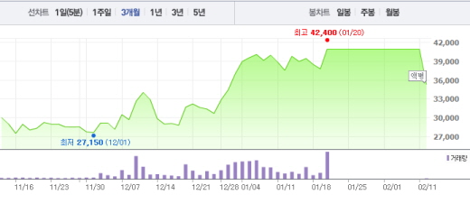 앞서 바디텍메드는 100원인 액면가를 1000원으로 변경하는 주식병합을 결정한 바 있다.주가흐름<사진출처=네이버 캡쳐>