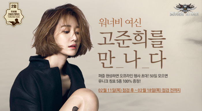 넥슨은 이번 신규 캐릭터 출시를 기념해 18일까지 특별 이벤트를 진행, '고준희 퍼즐판'을 완성한 유저 중 500명을 추첨해 마우스패드와 브로마이드 등 현물 상품을 증정하며 완성 유저 전원에게는 '키스 수류탄(100일)' 아이템을 지급한다. '고준희 캐릭터(50일)'을 획득한 유저에게는 패셔니스타, 차도녀 등 칭호 5종을 선물한다.
