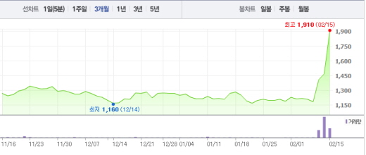 15일 오전 10시10분 현재 쌍용정보통신은 가격제한폭까지 치솟으면서 전일 대비 440원(29.93%) 상승한 1910원에 거래되고 있다.