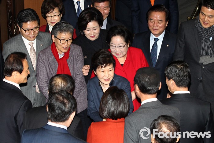 | △ 의원들과 인사하는 박근혜 대통령 |