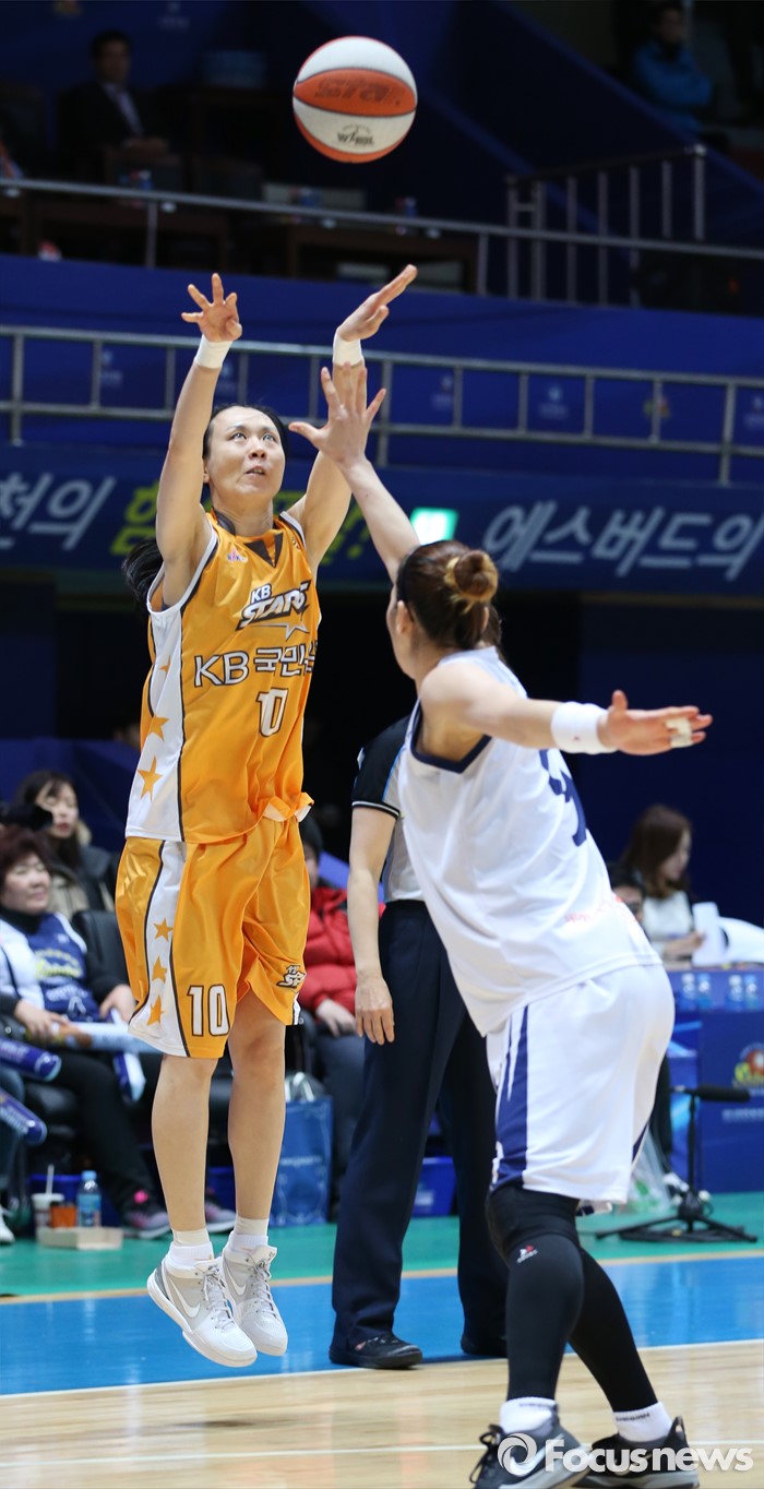 (서울=포커스뉴스) 여자프로농구 KB스타즈의 외곽슛이 폭발했다. 플레이오프 진출 가능성도 높아졌다.