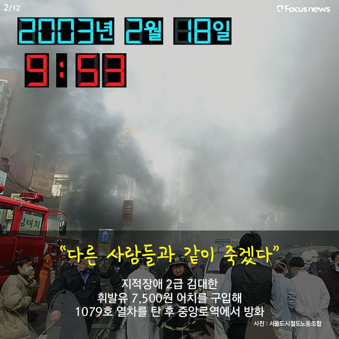 (서울=포커스뉴스) 사망 192명, 부상자 151명. 2003년 2월 18일, 세계에서 2번째로 많은 지하철 화재 희생자를 낳은 대구 지하철 참사가 일어났습니다. 13년 전, 뜨거운 불길 속에서 안타깝게 세상을 뜬 희생자들이 남긴 것과 아직도 끝나지 않은 남은 사람들의 슬픔을 카드뉴스로 기억합니다.