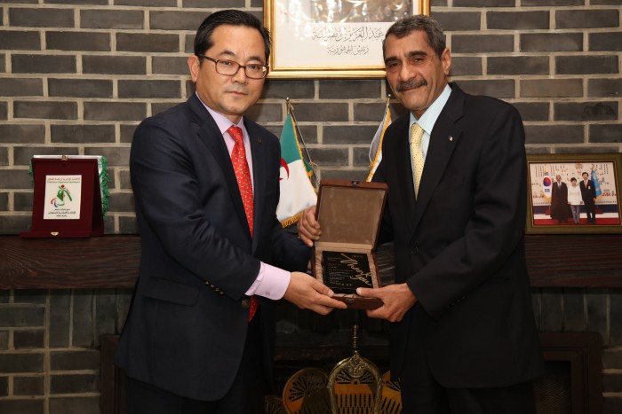 모함메드 엘아민 데라기 주한 알제리 대사는 전날 서울시 용산구 알제리 대사관에서 무학 이수능 부사장에게 알제리 와인 12종을 전달했다. 이수능 부사장은 이에 대한 답례로 감사패를 전했다.