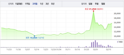 오리엔트 바이오 또한 하락세를 겪고 있다. 오리엔트바이오는 0.33%(5원) 상승한 1505원에 거래되고 있다. 오리엔트 바이오는 뇌염백신, 인플루엔자 백신의 생산원료를 공급하는 업체다.