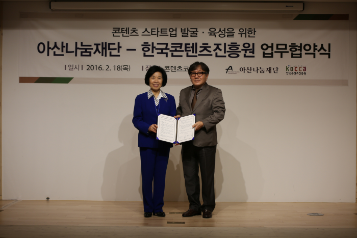 한국콘텐츠진흥원과 아산나눔재단, 스타트업 육성 위해 손잡아