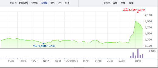 쌍용정보통신은 최근 가격제한폭까지 폭등하는 등 60%가 넘는 상승세를 기록하기도 했고 15일에는 현저한 주가 급등에 대한 조회공시를 요구받기도 했다.